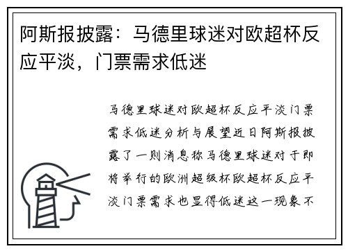 《霍伊别尔感慨:“我们的梦想就此终结”——痛失希望的背后》 2024年12月,在一次充满期待的赛季关键战役中,托特纳姆热刺队在欧洲赛事中遭遇了不幸,未能如愿晋级,而球队的中场核心霍伊别尔在赛后发表了深...