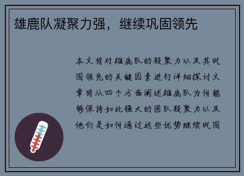 本篇文章将深入分析雷霆队在比赛中的战术精准与锁定胜局的关键因素。文章分为四个方面进行详细阐述,分别是雷霆队的防守体系、进攻节奏的把控、球员间的默契配合以及教练的战术部署。每个方面将从不同角度展开分析,...